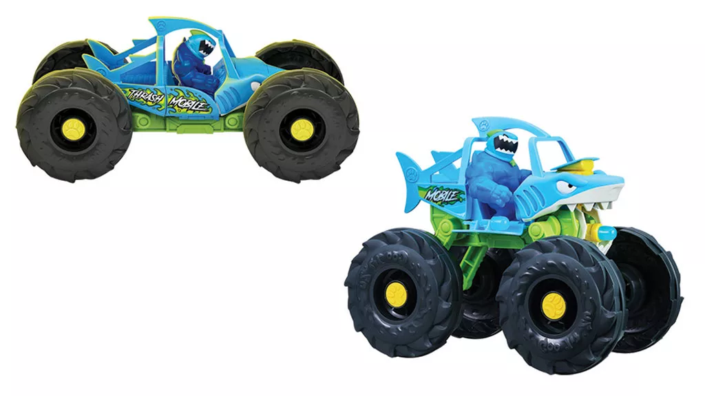 Otroci lahko to vozilo Goo Jit Zu spremenijo iz hitrega dirkalnega vozila v napadalni pošastni tovornjak, če stisnejo ali raztegnejo plavut. Vozilo lahko sprejme tri like in vsebuje ekskluzivno figuro Thrash.