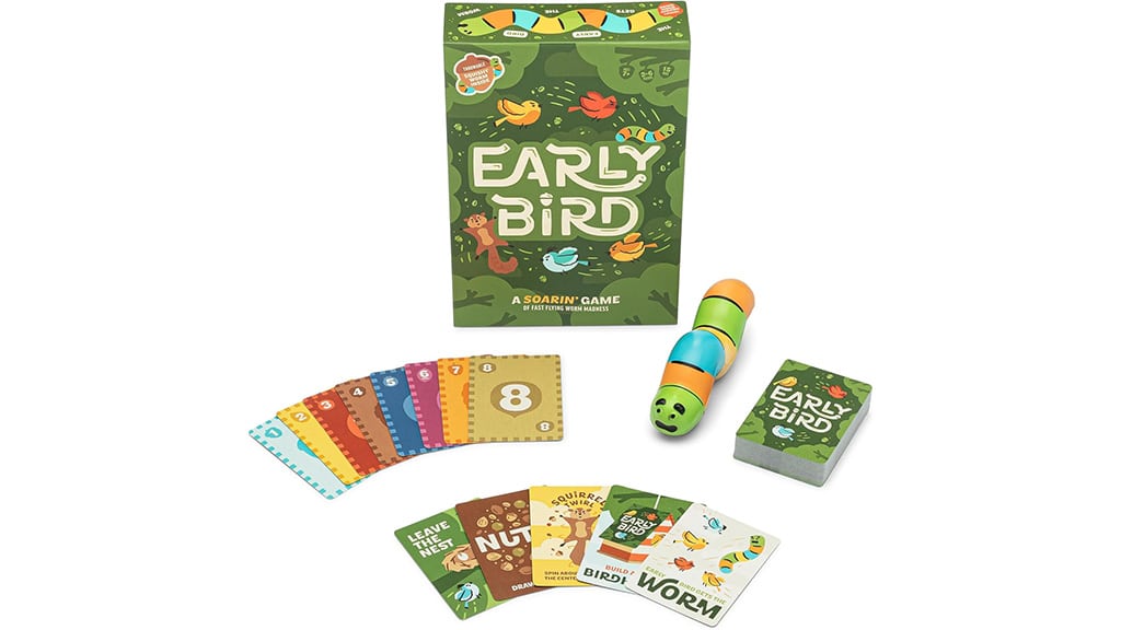 Early Bird je popolna igra za tiste, ki imajo radi hitro razmišljanje in gibčne gibe. Ta igra združuje elemente klasične igre Speed z vznemirljivimi fizičnimi preobrati. Pri igri Early Bird ne boš potreboval le svojega razmišljanja, temveč tudi svoj reakcijski čas in gibčnost, zato te v vsaki rundi čakajo novi izzivi. Je idealna izbira za druženje s prijatelji ali družinske srečanja, kjer sta tekmovalni duh in zabava zagotovljena!Zabavna in hitra igra Early Bird zagotavlja razburljivo zabavo s krili. Ta igra je polna vznemirjenja in dinamike, zato pritegne pozornost v vsakem trenutku. Zaradi hitrega tempa morate biti ves čas pozorni, kar še bolj popestri doživetje. Idealna izbira za vse, ki imajo radi izzive ter vesele, dinamične igre.