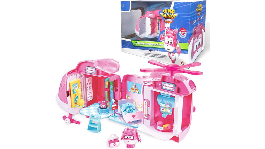 Dizzy reševalni helikopterski komplet je igrača, ki se lahko preoblikuje iz helikopterja v bolnišnico, tako da lahko družine vadijo najboljše reševalne metode. World Spaceport Robot 3-v-1 preoblikovalna figura, 5-palčna Golden Boy preoblikovalna figura ter 5-palčni klasični liki v pakiranju po štiri vsi vsebujejo dobro znane like (kot so Jett, Paul, Astra in Donnie), ki jih je mogoče enostavno preklopiti iz načina letala v način robota. Te igrače niso le zabavne, ampak razvijajo tudi ustvarjalnost in domišljijo otrok, medtem ko doživljajo razburljive dogodivščine s svojimi najljubšimi junaki.Družine, pripnite varnostne pasove — te vznemirljive nove Super Wings igrače so pripravljene na vzlet in jih najdete spodaj. Te igrače niso le zabavne, ampak razvijajo tudi otroško ustvarjalnost in domišljijo. Skupaj odkrijte svet Super Wings in doživite nepozabne dogodivščine z vsemi člani družine!