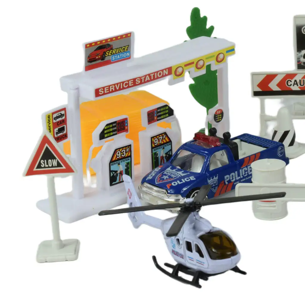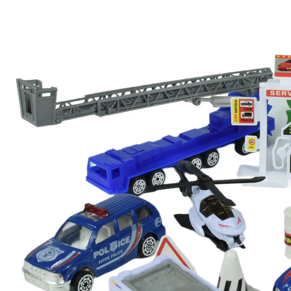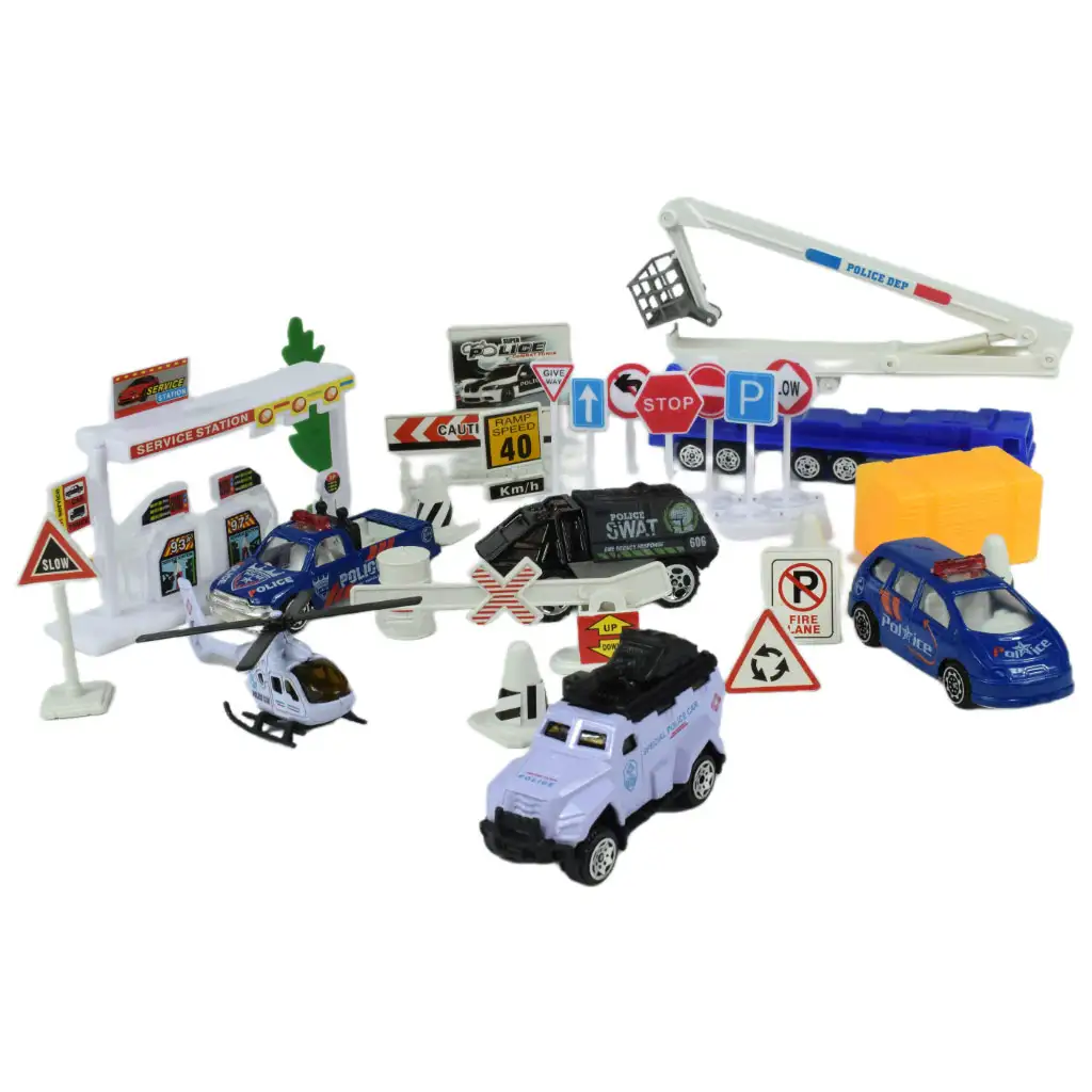 V kompletu najdete helikopter, s katerim lahko med letom sledite zločincem, avtomobile, s katerimi lahko igrate vznemirljive pregonje, avtomobile z dvigalom, s katerimi lahko simulirate katero koli situacijo, in celo ograje za zapiranje ter prometne znake, s katerimi lahko ustvarite popolnoma avtentično policijsko prizorišče za igro. Ti dodatki ne samo spodbujajo kreativnost, ampak tudi zaradi svoje realističnosti povečujejo otrokovo igralno izkušnjo.
