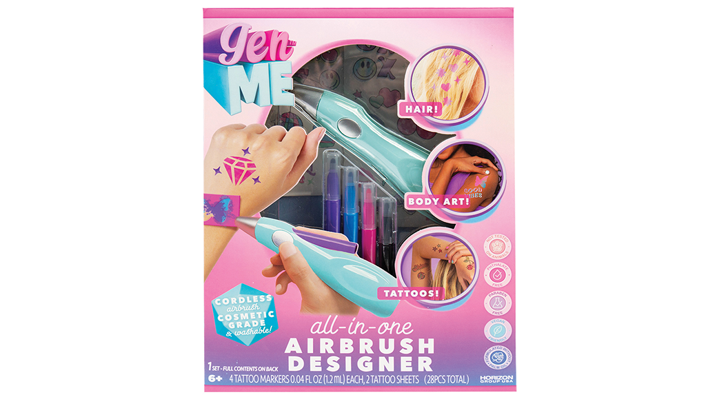 Otroci lahko ustvarjajo poslikave telesa, barvanje las in začasne tetovaže z brezžičnim, kozmetično kakovostnim airbrush peresom. Komplet vsebuje šablone in umetno belo podaljšanje las. To ustvarjalno orodje omogoča otrokom, da izrazijo svojo individualnost in na zabaven način razvijajo svojo ustvarjalnost. Tehnika airbrush je enostavna za uporabo, zato lahko otroci zlahka ustvarjajo različne vzorce in barve, medtem ko varno eksperimentirajo z različnimi slogi.
