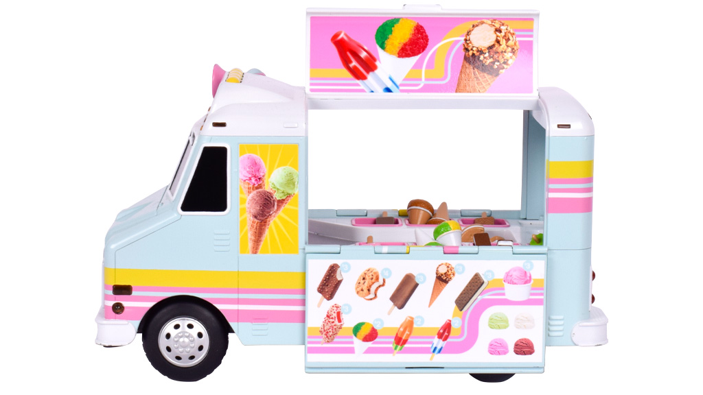 Otroci lahko dvigujejo, premikajo in razbijajo gradbene kocke s pomočjo treh krmilnih palic! 27-palčni žerjav ima tri dodatke — žlico, kavelj in rušilno kroglo — ter utripajoče luči in "realistične zvoke". S pritiskom na gumb se žerjav premika naprej ali nazaj.Potegni nazaj sladoledarski avto, ga zavrteti in opazovati, kako se premika! 30-centimetrsko vozilo ima obe stranski okni, ki se odpirata, da lahko otroci pokukajo noter in se pretvarjajo, da strežejo 16 različnih igrač sladoleda. Sladoledarski avto sveti, predvaja različne zvoke in ima na tablah navedene različne okuse. Ta igrača ni le zabavna, ampak tudi razvija otrokovo domišljijo in socialne veščine. Podrobna izdelava in realistične funkcije naredijo igro še bolj prijetno. Popolna izbira za vsakega malčka, ki ima rad sladoled in igranje vlog.