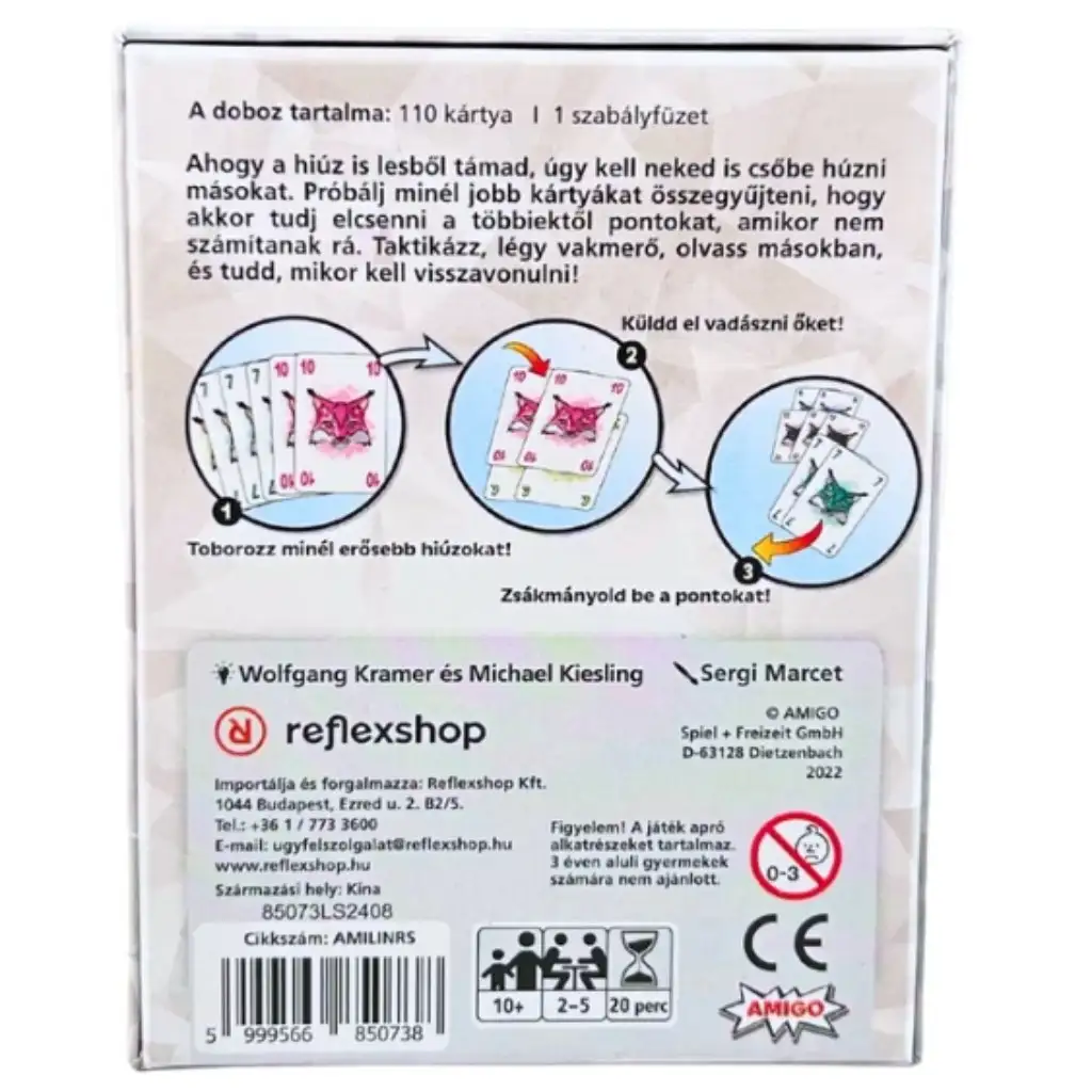 Izberi Risa! je zabavna, dinamična kartaška igra, kjer sta strategija in kraja v ospredju! Cilj je zbrati čim več kart pred seboj, saj te prinašajo točke. Vendar bodi pozoren, saj ti lahko drugi kadarkoli ukradejo te karte in celo tvoje točke! Zaradi enostavnih pravil je igra lahko učljiva, a zaradi stalnega rivalstva vedno ostaja vznemirljiva. Pametno igraj svoje karte, spretno kradi in zberi dovolj točk, da postaneš zmagovalec. Popolna izbira za družinska popoldneva in srečanja s prijatelji!