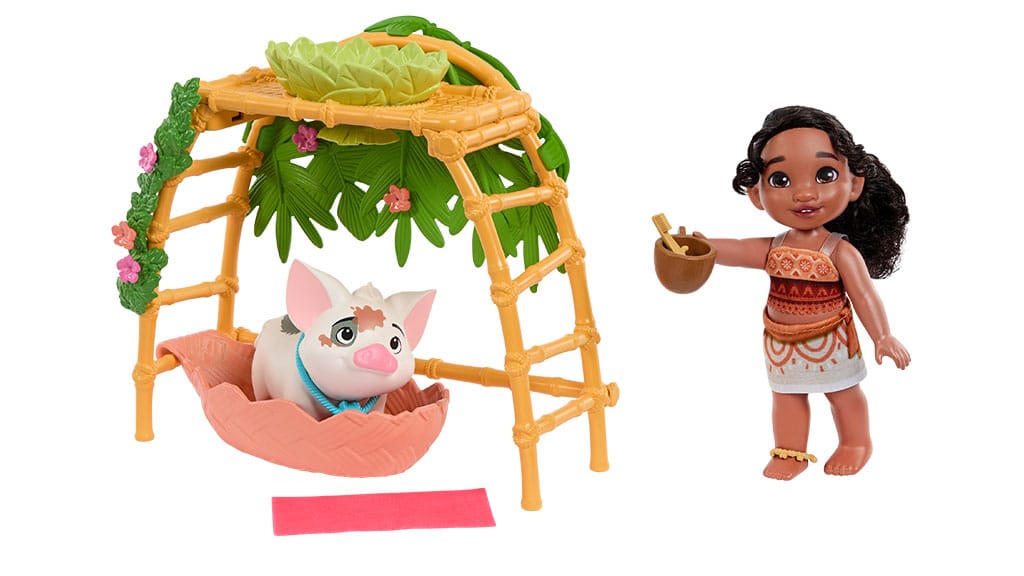 Otroci lahko odkrijejo svojo pustolovsko žilico s tem igralnim kompletom. Komplet vsebuje 3,5-palčno punčko Vaiana, njenega živalskega prijatelja Simea, Puaja, in več kot pet pripovednih dodatkov, da si lahko zamislijo pustolovščine na otoku Motunui in onkraj.