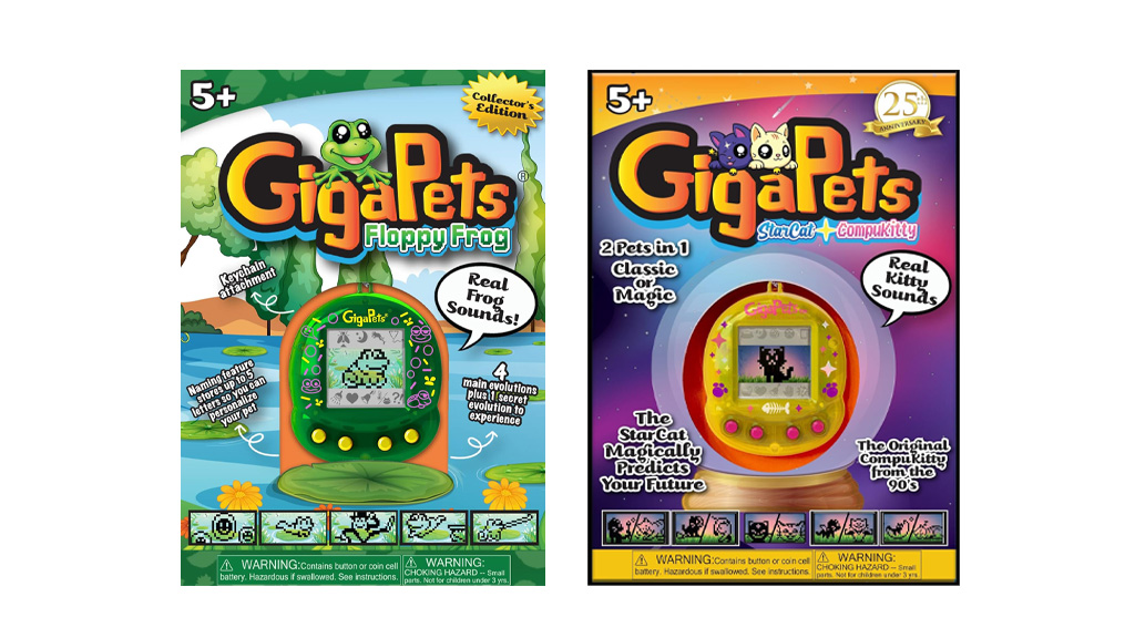 90. leta so se vrnila — natančneje, igre, ki so navdihnjene z 90. leti. Top Secret Toys je začel serijo z imenom "GigaPets", tako da lahko otroci vzgajajo digitalne hišne ljubljenčke, tako kot so to počeli njihovi starši ali sorojenci v 90. letih. Te igre ne ponujajo le nostalgične izkušnje, ampak tudi razvijajo otrokovo odgovornost in sposobnost skrbi. GigaPets ponuja različne živali, kot so psi, mačke in eksotične živali, tako da lahko vsakdo najde svojega najljubšega. Zahvaljujoč novi tehnologiji so ti digitalni hišni ljubljenčki še bolj interaktivni in zabavni kot kdajkoli prej.Obstajajo štiri nove virtualne hišne ljubljenčke, vključno z Bit Bunnies, Floppy Frog, Pixie in StarCat/CompuKitty. Vsak GigaPet se prilega v roko otroka (ali tvojo) in je opremljen s ključkom. Zasloni so obdani s prosojnimi bleščečimi ohišji, štirimi gumbi in ikonami, ki ustrezajo temi digitalnega hišnega ljubljenčka.