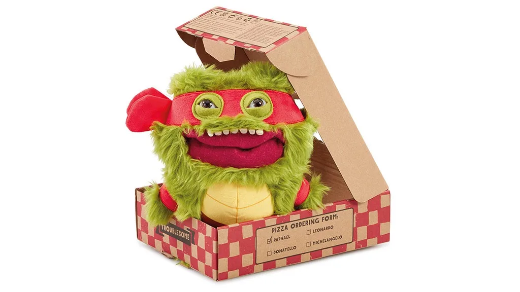 Raphael iz risanke Ninja želve je dobil nov videz. Ta smešna, grda plišasta igrača prikazuje Rapha kot divjo deklico z zobmi, praznimi očmi, gumbnico, rdečo masko in oklepom želve.