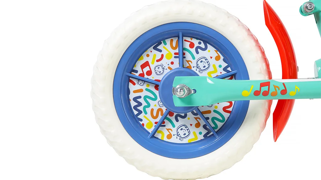 Od Dynacraft izdelano CoComelon 10-palčno tekaško kolo je zasnovano za pomoč otrokom pri vadbi ravnotežja, preden preidejo na kolo s pedali. Kolo ima 10-palčna kolesa (ki so idealna za otroke, visoke približno 31-39 palcev), snemljivo krmilno torbico, EVA pnevmatike, ki ne povzročajo defektov, ter veselo grafiko JJ in Codyja. Prispelo je delno sestavljeno in zahteva približno 20 minut za popolno sestavo (potrebno je odraslo sestavljanje).