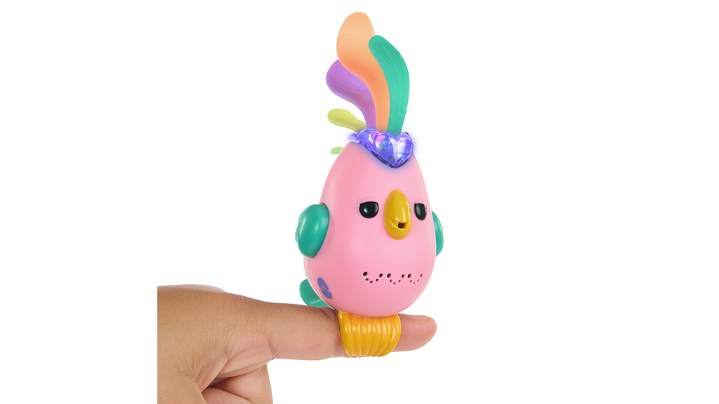 Družine, ki iščejo interaktivne igre; darovalci, ki iščejo cenovno dostopne možnosti; zabava med potjo.Ta ptica je na voljo v roza in modri barvi ter proizvaja več kot 40 zvokov in reakcij. Ko otroci ptico postavijo na prst, lahko snemajo in predvajajo skrivna sporočila ali pa ptica posluša in ponovi, kar otroci rečejo.