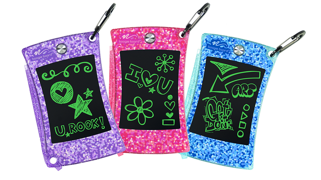 Jot Pocket Pisalna tabla je tanka, lahka, večkrat uporabna tabla. Otroci lahko s pomočjo pisala rišejo in pišejo na črno površino, nato pa lahko 4,5-palčni zaslon izbrišejo s pritiskom na srebrni gumb. Otroci lahko s priloženim karabinom pritrdijo tablo na svoj nahrbtnik, torbo staršev ali torbo za plenice. Poleg tega lahko igračo postavijo s pomočjo stojala.