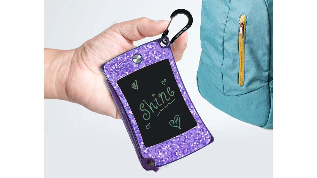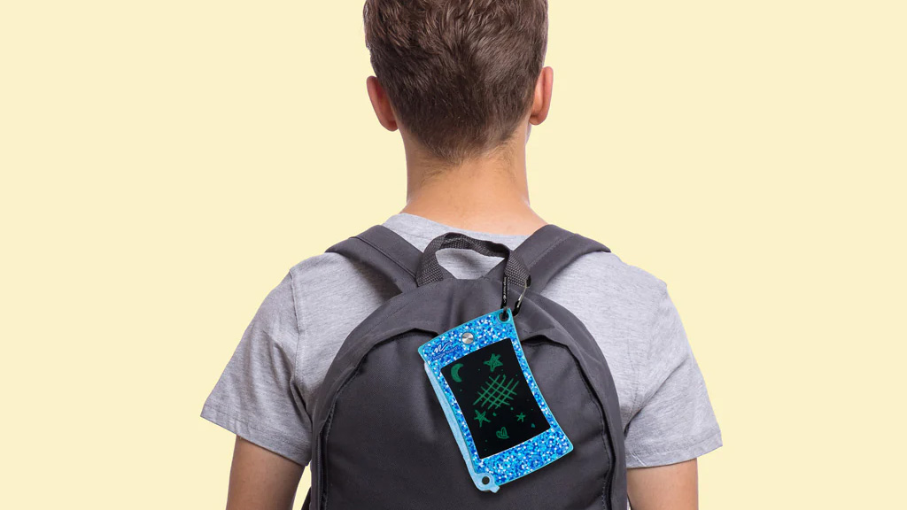 Pisalo na tablico je popoln potovalni dodatek — ni težak, enostavno ga je pritrditi na torbe, ne potrebuje krpe za čiščenje zaslona in otroci ga lahko uporabljajo ure in ure. Otroci lahko rišejo, igrajo igre, kot je križci in krožci s svojimi brati in sestrami, vadijo svoj besedni zaklad in matematiko ter se izražajo z roza, modrim ali vijoličnim bleščečim dodatkom. Pisalo ne potrebuje velikega pritiska za delovanje, vendar če še niso pripravljeni držati pisala, lahko otroci rišejo tudi z nohti.