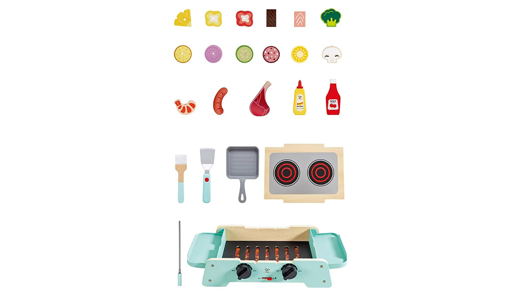 Mali kuharji se lahko pripravijo na poletne piknike z žarom s pomočjo sizzle palačinkarja in žara BBQ od Hape. Komplet s 24 kosi vsebuje kuhinjske pripomočke, potrebne za žar, kot so dve nabodali, čopič, ponev in lopatica. Otroci lahko pripravijo pravo pojedino z dodatki za hrano, ki vključujejo različne vrste mesa, zelenjave in začimb. Žar ima dva gumba za nastavitev temperature in drsnik za prižiganje oglja.