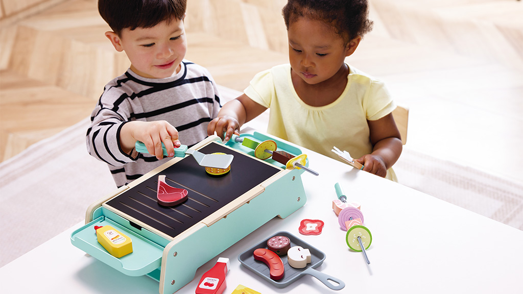 Majhni otroci so še premladi, da bi uporabljali žar svojih staršev, vendar se lahko s tem tridelnim igralnim kompletom naučijo osnov. S tremi različnimi načini kuhanja lahko mali kuharji pečejo ražnjiče, pečejo meso v ponvi in kuhajo zelenjavo na štedilniku. Otroci lahko še bolj poglobijo svoje domišljijske kuharske izkušnje z uporabo lopatice, ki ob pritisku na gumb oddaja cvrčeče zvoke. Med igro otroci razvijajo svojo čustveno rast in krepijo svoje fine motorične in socialne veščine. Ko se igra konča, je pospravljanje otročje lahko, saj vse lahko shranijo v notranjost žara.