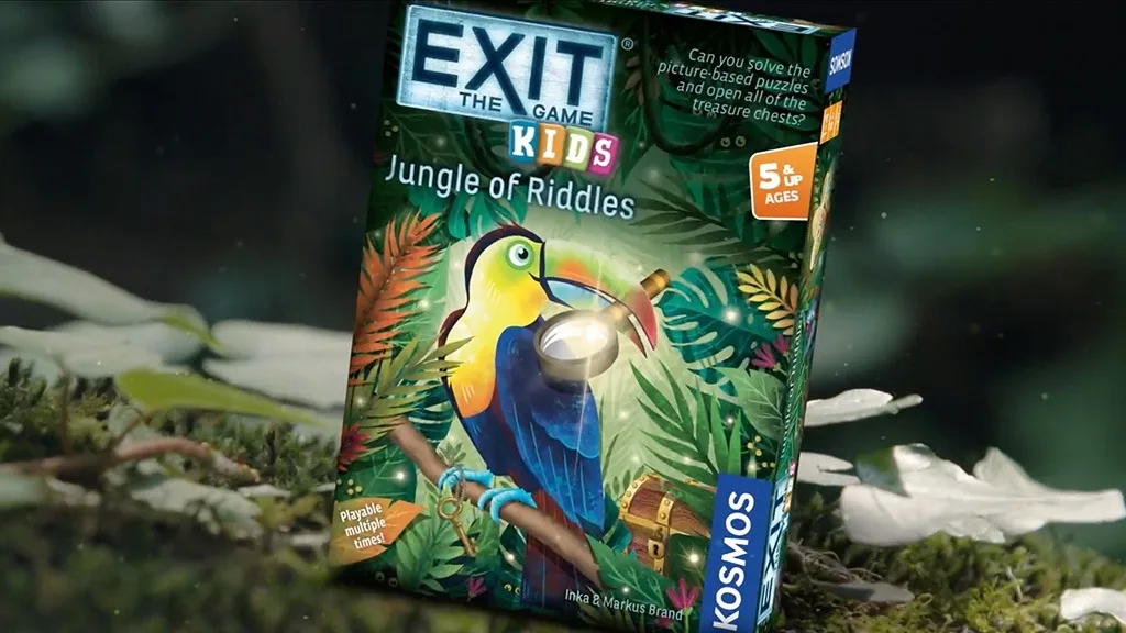 EXIT: Kids - Ugank v džungli zahteva od otrok, da rešijo slike temelječe uganke, da odklenejo zaklade, ki jih čuvajo živali. Igra vključuje odgovorni list, 36 ugankarskih kart, devet zakladnih žetonov, šest ključnih žetonov in sedem čudnih predmetov. Igralci morajo vleči ugankarsko karto po barvah in posamično reševati uganke. Če je po odgovornem listu njihova rešitev pravilna, otroci prejmejo ključni žeton, da odklenejo zakladnico. Pustolovščina se konča, ko igralci rešijo šest ugank in pridobijo svoje zaklade.