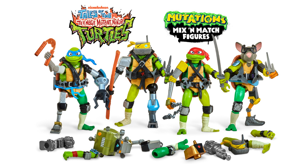 Otroci lahko mešajo in kombinirajo elemente — vključno z rokami, nogami, glavami, orožjem in še veliko več — med akcijskimi figurami likov iz TV-serije Pustolovščine Ninja želv. Vsaka 4,5-palčna figura prihaja z dodatki, ki jih je mogoče odstraniti in namestiti na druge like. Zbirka vključuje like Leonardo, Raffaello, Michelangelo, Donatello, mojster Splinter in Bishop.