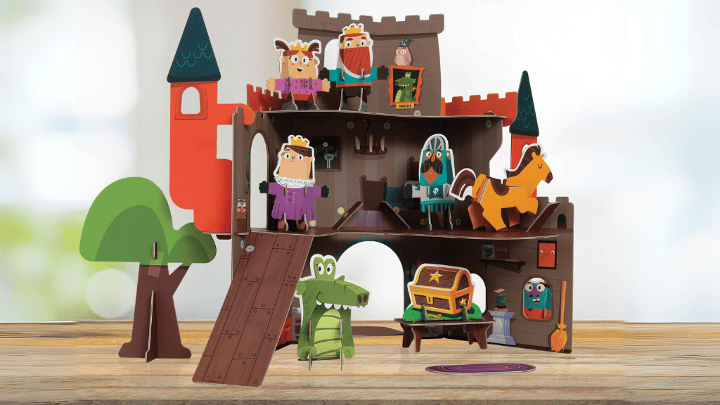 CURIOUS KINGDOM PLAYSET od PLAYPER je zložljiv igralni set, ki otroke popelje v svet vitezov, zmajev in princes. Ta set je izdelan iz okolju prijaznih materialov, zato je trajen in prijazen do našega planeta. Zasnovan je tako, da spodbuja domišljijo z interaktivnimi prizori in liki, tako da vsaka igra postane pustolovščina.