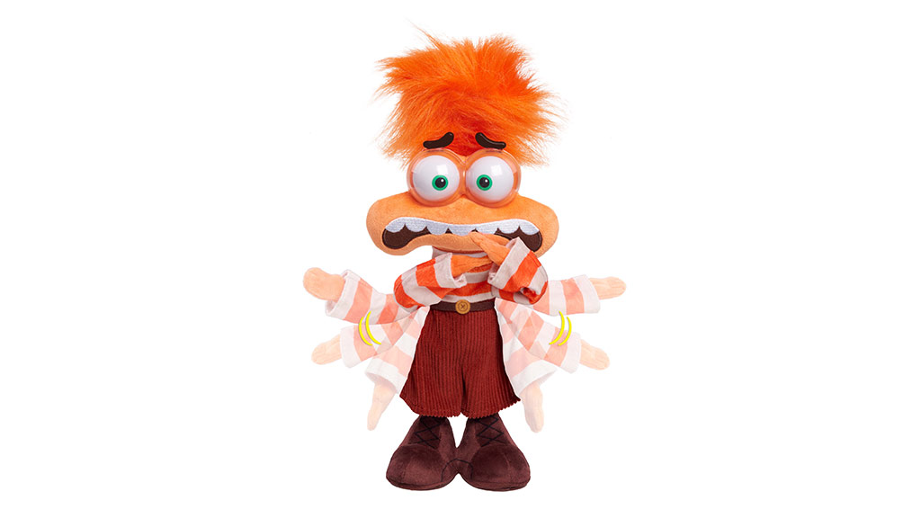 Ko otroci igrajo s tem plišastim igračem Anksioznost, vsa njihova lastna anksioznost izgine! Ko otroci zvijajo Anksioznostine lase, se ta trese in izgovarja stavke iz filma Vrvež v moji glavi 2, medtem ko se mu tresejo tudi oči. Bolj ko zvijajo njegove lase, bolj se trese in govori. Ta 33 cm visok plišasti lik ima premične roke, oblikovane lase in vezenine. Igrača pomaga otrokom pri soočanju z vsakodnevnim stresom in anksioznostjo, hkrati pa ponuja zabavno in interaktivno izkušnjo.
