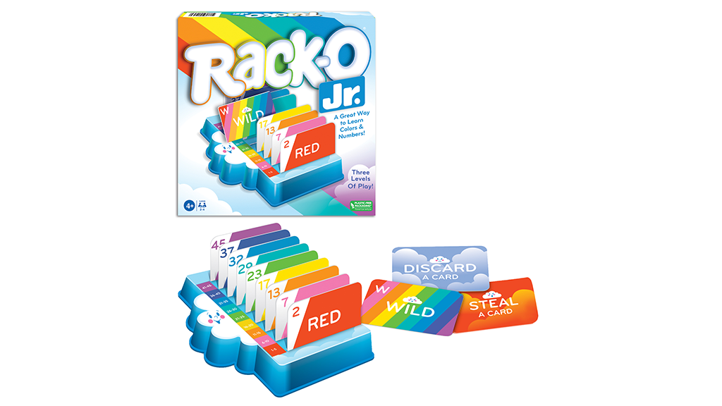 Medtem ko Rack-O Jr. ponuja izobraževalne prednosti in zabavno igralno izkušnjo, je starševski nadzor še posebej pri mlajših igralcih lahko potreben. Poleg tega nekateri otroci morda sprva potrebujejo pomoč pri razumevanju pravil, vendar preprostost igre omogoča hitro učenje in sčasoma samostojno igranje.Starši iščejo privlačne dejavnosti, ki spodbujajo učne sposobnosti zunaj tradicionalnega učilničnega okolja; predšolski otroci; družine, ki iščejo nove dodatke k večernim igram.V tej mladinski različici igre Rack-O je cilj, da nekdo prvi napolni svoj nosilec s kartami od najnižje do najvišje. Številčne karte so barvno kodirane, da ustrezajo barvam mavrice (in barvam nosilcev). Posebne karte naredijo to igro za 2-4 igralce zanimivo.