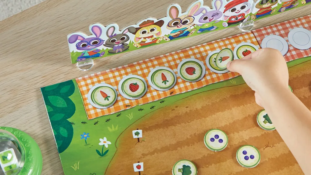 V tej igri, ki jo je pripravil hand2mind, igralci sodelujejo z namenom, da 12 ljubkih zajčkov dobi pravilno brunch naročilo. Najprej otroci izberejo vzorčno kartico in jo postavijo pred zajčke. Nato vržejo kocko, da vidijo, katere zelenjave lahko izberejo iz vrta, da postrežejo zajčkom. Vendar morajo biti previdni tudi pred lačno mišjo, ki se trudi ustaviti jih na poti - morajo dokončati vzorec, preden ta poje vso hrano. Če jim to uspe, igralci skupaj zmagajo v igri!