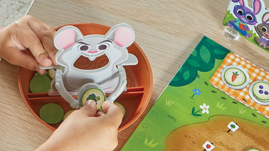 V tej igri otroci tekmujejo, da dokončajo vzorce na krožnikih, da bi nahranili zajčke, preden miš poje zajčjo hrano.