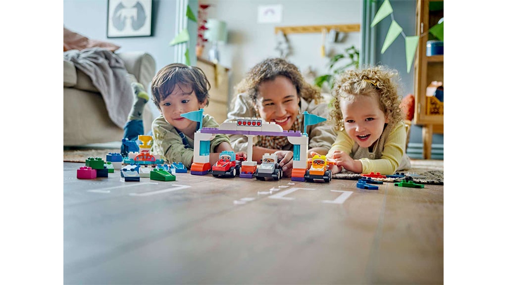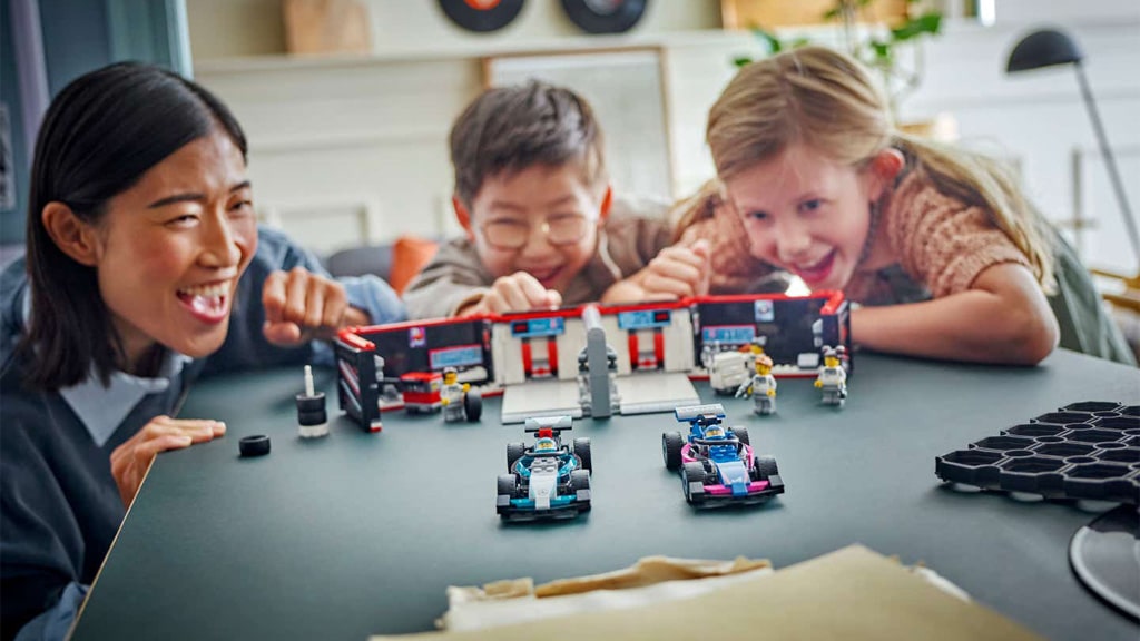 Družine lahko doma zgradijo svojo lastno Grand Prix dirko s kompletom LEGO DUPLO Town F1 Team Dirkalni avtomobili in Piloti. Komplet vsebuje štartno mrežo, stopničke, dva avtomobila in dva pilota ter dodatne elemente za prilagoditev dirkališča in dirkalnih avtomobilov. Ta komplet zagotavlja zabavno in ustvarjalno preživljanje časa ne le za otroke, ampak za celotno družino, saj lahko vsi sodelujejo pri načrtovanju dirkališča in prilagajanju avtomobilov. Med skupnim gradnjo in igro lahko družinski člani sodelujejo, razvijajo svojo ustvarjalnost in sposobnosti reševanja problemov, medtem ko uživajo v skupnem preživljanju časa.Serija "LEGO City F1" — ki obsega šest kompletov — vključuje prevoz vozil, ekipno garažo, začetek dirke, postanke v boksih in še veliko več, kar omogoča, da tudi "večji otroci" doživijo vznemirjenje Grand Prixa. LEGO konstrukcije so podrobno izdelane, kar zagotavlja prilagodljivo zabavo.