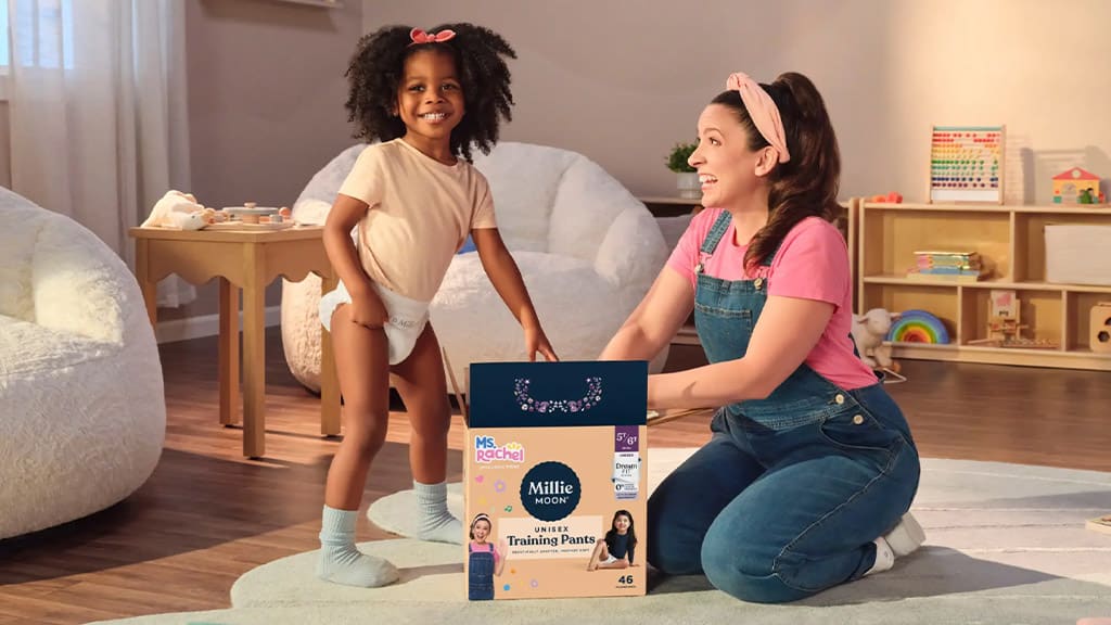 Ms. Rachel videoposnetki so po vsem svetu pomagali družinam premagovati izzive navajanja na kahlico. Zdaj najljubša učiteljica oboževalcev sodeluje z Millie Moon znamko, da bi ustvarili novo kolekcijo učnih hlačk, tako da lahko Ms. Rachel sodeluje na vsakem koraku poti otrok do samostojnosti pri uporabi stranišča.