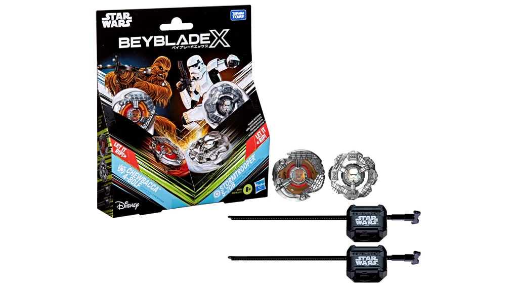Iz ne tako oddaljene galaksije so prispeli novi Beyblade igrače, ki otrokom prinašajo like iz vesolja Vojne zvezd. Zdaj lahko otroci prirejajo galaktične bitke s kompletom Beyblade X in Star Wars Collab Chewbacca 4-80LF proti Stormtrooper 5-70B Multipack. Beyblade navdušenci se lahko podajo v boj s kompletom, ki vsebuje dve zamenljivi rezili, ragljo in dodatke. Ta komplet ne razvija le ustvarjalnosti in strateškega razmišljanja, ampak omogoča tudi, da otroci doživijo vznemirjenje bitk s svojimi najljubšimi Star Wars liki. Med igro lahko prijatelji skupaj ali drug proti drugemu preizkusijo, kdo bo najboljši prvak galaksije!
