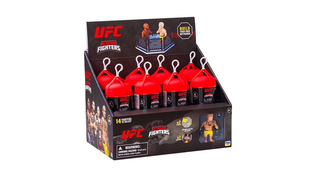 Vsaka presenečenje kapsula skriva enega izmed 14 mini UFC borcev. Poleg tega otroci najdejo tudi dodatke, nalepko, mini plakat in povezljivo podlago, s pomočjo katere lahko zgradijo Oktagon. Ta igrača ni le zabavna, ampak razvija tudi ustvarjalnost in domišljijo, medtem ko otroci odkrivajo svoje najljubše borce in ustvarjajo svojo lastno UFC areno.