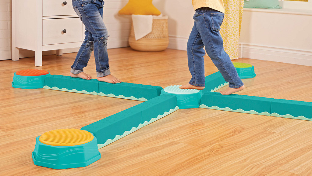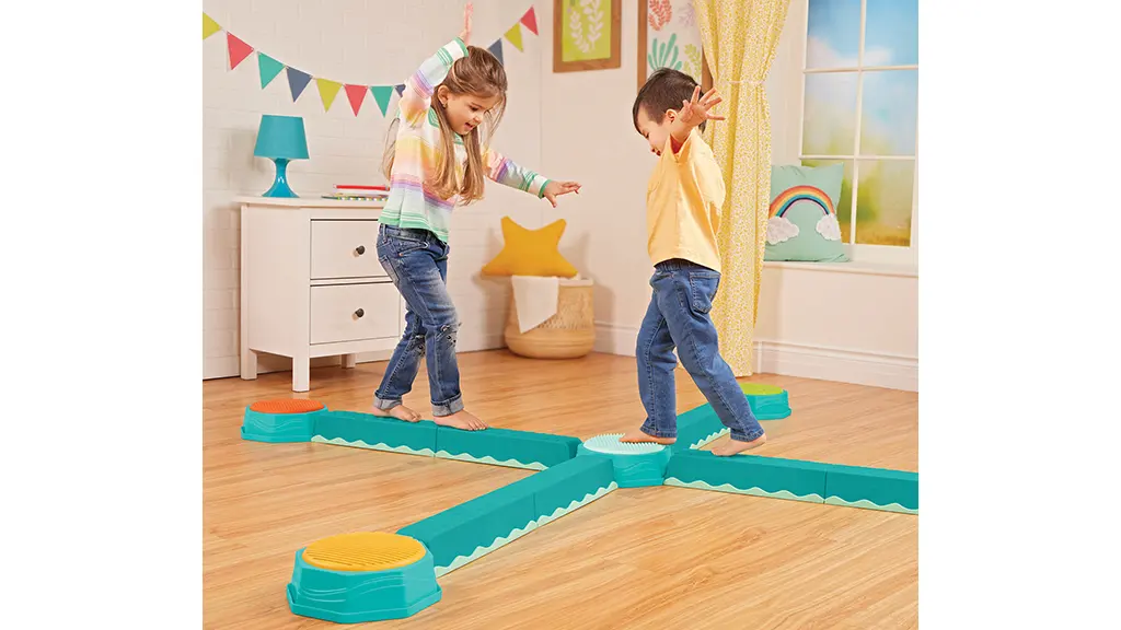 Ustvari edinstveno ravnotežno pot in spodbujaj gibanje in ustvarjalnost s tem kompletom, ki vsebuje osem povezanih delov tramov in pet senzoričnih stopnic. Ta komplet je odličen za otroke, da razvijajo svoj občutek za ravnotežje in motorične sposobnosti, medtem ko se zabavajo. S kombiniranjem različnih elementov lahko ustvariš številne različice, tako da se vsakič srečajo z novimi izzivi. Poleg razvoja "gibanja" in "ustvarjalnosti" komplet pomaga otrokom tudi pri izboljšanju "prostorske orientacije" in "reševanja problemov".