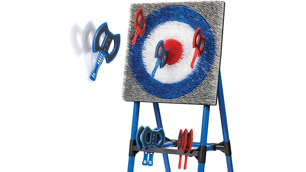Zgrabi svojo varnostno sekiro, nameri na tarčo in poskusi zadeti sredino! Ta vzdržljiva tarča za metanje sekire se lahko postavi na travo, pesek ali asfalt in je popolna za igro na plaži, v parku ali na dvorišču.
