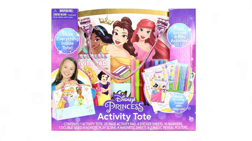 Pobarvaj s Tiano, Belle, Pepelko in Disneyjevimi kraljevimi princesami! Vsebuje več kot 100 kosov, vključno z magnetnim igralnim prizoriščem, delovnim zvezkom, nalepkami, flomastri in čarobno pojavnimi plakati. Materiale lahko shranite in prenašate v torbi, tako da lahko uživate v kraljevski zabavi tudi na poti. Poleg tega komplet vsebuje še pobarvanke, sestavljanke in posebno presenečenje, ki bo uresničilo sanje vsake male princese.
