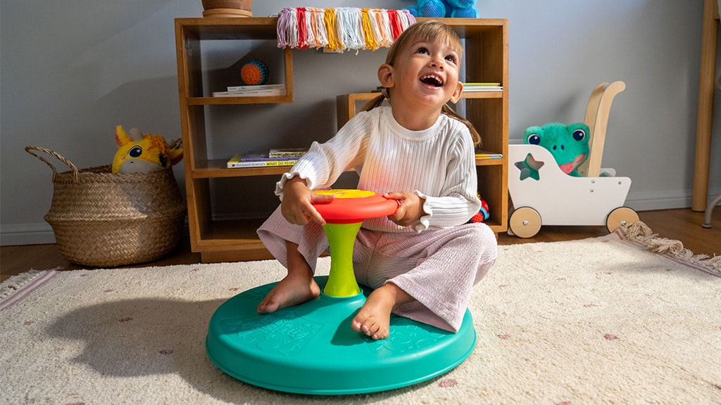 Otroci lahko izbirajo, ali se bodo počasi vrteli ali hitro sukali. Ta klasična igrača Playskool je odlično primerna za razvoj ravnotežja, koordinacije, motoričnih spretnosti ter razumevanja vzročno-posledičnih povezav skozi aktivno igro. Playskool vrtiljak je že desetletja priljubljen med družinami, saj ni le zabaven, ampak otrokom tudi pomaga, da se med igro učijo in razvijajo. Zaradi vzdržljive zasnove igrača dolgo razveseljuje najmlajše, ki lahko v varnem okolju odkrivajo veselje do gibanja.