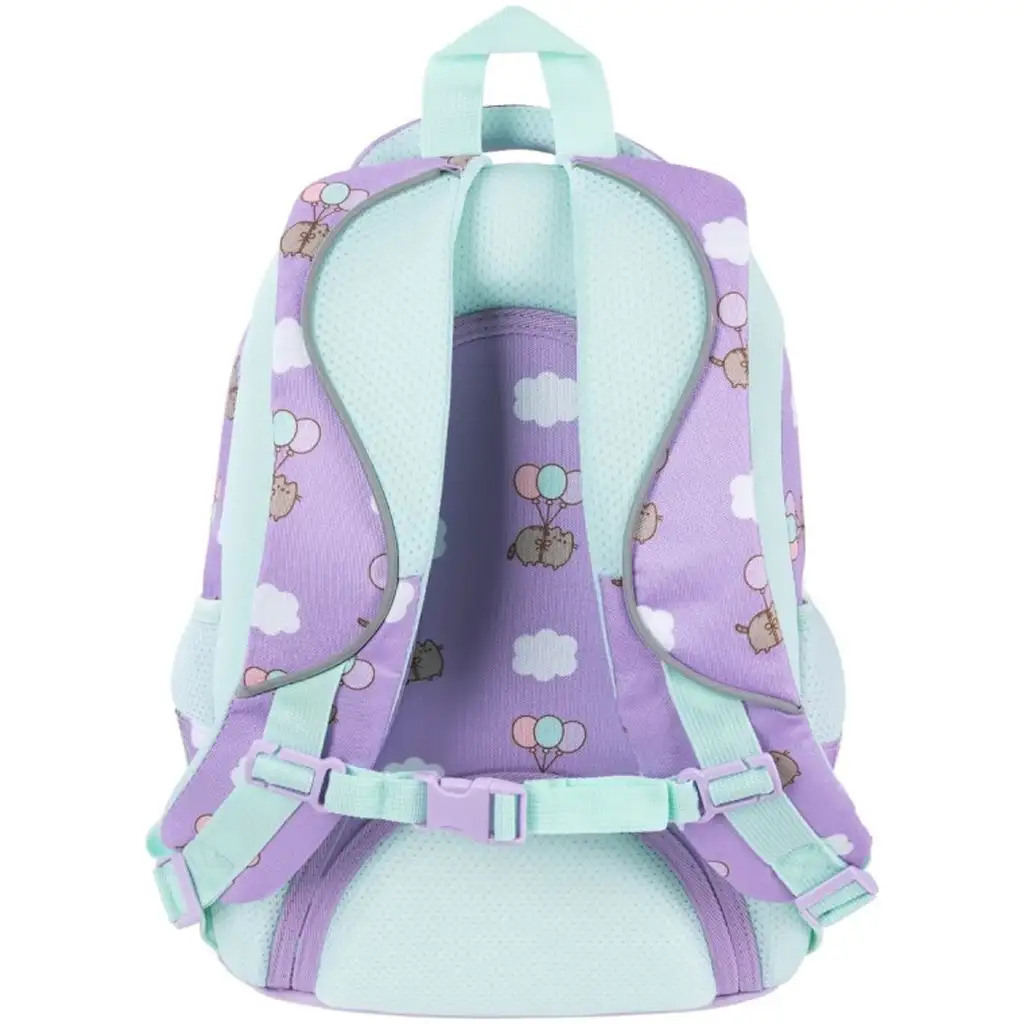 Pusheen Violet ergonomski šolski nahrbtnik BPL58 je popolna izbira za vsakega osnovnošolca, ki je oboževalec Pusheen mačke in ima rad srčkate ter praktične dodatke. Nahrbtnik krasi čudovita vijolična barvna kombinacija z detajli v mint zeleni in veselimi grafikami dobro znane mačke Pusheen, ki med oblaki leti z baloni. Zadrge v obliki zvezdic in dekorativni vzorci oblakov še dodatno poudarijo čar nahrbtnika ter mu dajo moderen in vesel videz.