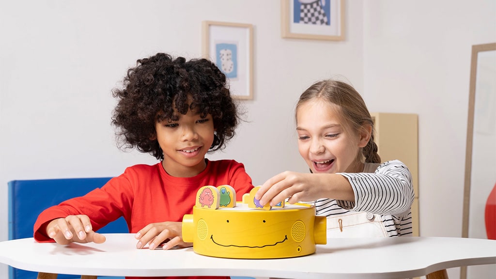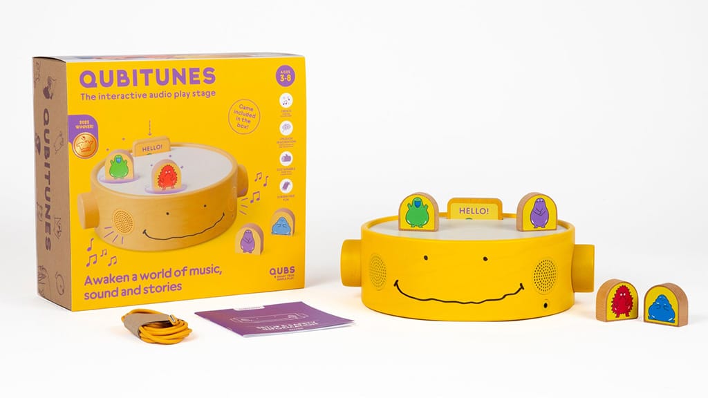 Malčki lahko povzročijo pravi hrup v igralnici z igro Qubitunes. Ta interaktivna igralna postaja spodbuja zabavo brez zaslona in spodbuja ustvarjalno, domišljijsko igro. Otroci, stari 3 leta in več, lahko doživijo razburljive zvočne izkušnje, če leseno kaseto vstavijo v ustrezno režo. Otroci lahko na oder ne le zlagajo gradnike, temveč uporabljajo tudi vrtljive gumbe za dodatno upravljanje. Z vrtenjem desnega gumba lahko uravnavajo glasnost, s pritiskom nanj pa vklop in izklop. Z vrtenjem levega gumba lahko spreminjajo način igre, želeni način pa izberejo s pritiskom na gumb. Ta igra ni le zabavna, ampak razvija tudi finomotorične spretnosti, sposobnost reševanja problemov in glasbeni čut, medtem ko se otroci brezskrbno igrajo.