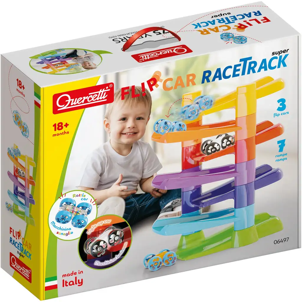 Ta stolp je idealna izbira, če želite preko igre razvijati gibanje, koncentracijo in zaznavanje – medtem ko se vaš otrok brezskrbno zabava. Quercetti Flip Car spiralna proga je popolno darilo, ki prebudi domišljijo in male avtomobilčke!