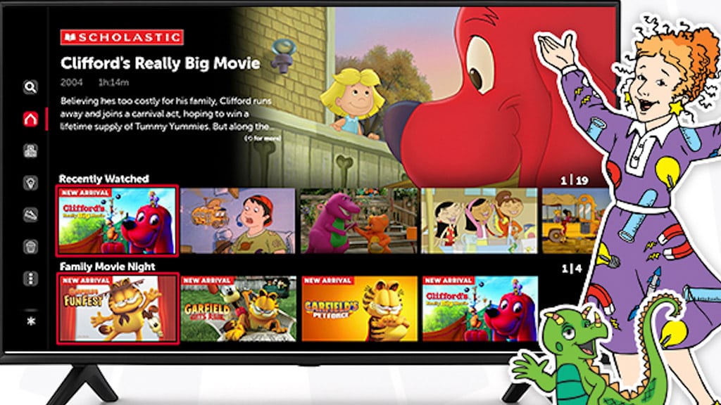 Aplikacija Scholastic TV, ki je na voljo na platformah Roku in Amazon Fire TV, ponuja več kot 400 ur serij in filmov za otroke vseh starosti. Tudi najmlajši se lahko vključijo v brezčasne klasike Scholastica, kot so Clifford, veliki rdeči pes, Čarobni šolski avtobus, Kurja polt, Klub varušk, Animorphs in še veliko drugih razburljivih zgodb. Poleg tega bodo na voljo tudi priljubljene serije, kot sta Garfield in Barney in prijatelji. Te oddaje dodatno razširjajo ponudbo iz nabora 9 Story Media Group. Od zabavnih grozljivk do plesnih zabav z dinozavri te zgodbe pomagajo otrokom osvojiti pomembne pojme in veščine, hkrati pa v njih prebujajo radovednost in ljubezen do vseživljenjskega učenja. Aplikacija s stalno rastočo vsebino pričakuje družine, da vsak najde najbolj zanimive in poučne oddaje zase.