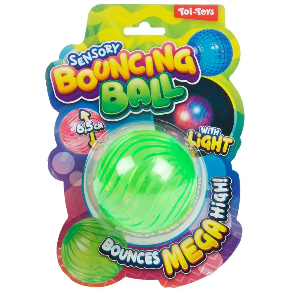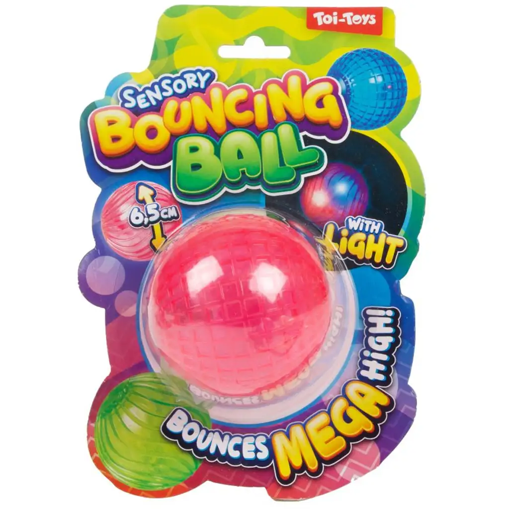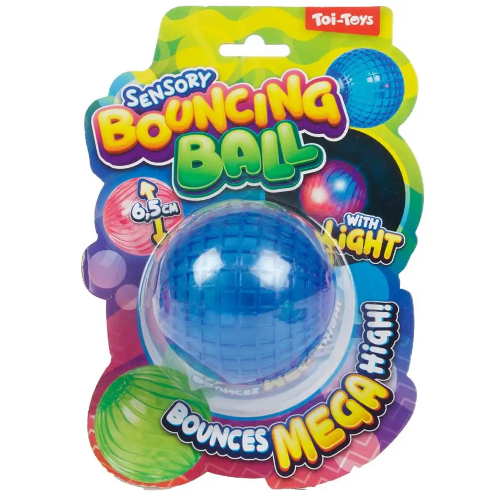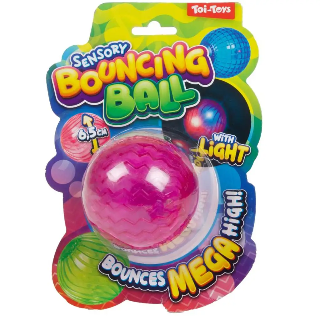 Vrzi, odbij, posveti – odbijajoča žoga Toi-Toys Sensory Bouncing Ball bo zagotovo popestrila čas igre! Ta 6,5 cm premera velika, barvita in prozorna gumijasta žoga ne samo, da izjemno visoko odskoči, ampak se ob udarcu tudi zasveti, kar naredi igro še bolj zanimivo in privlačno.