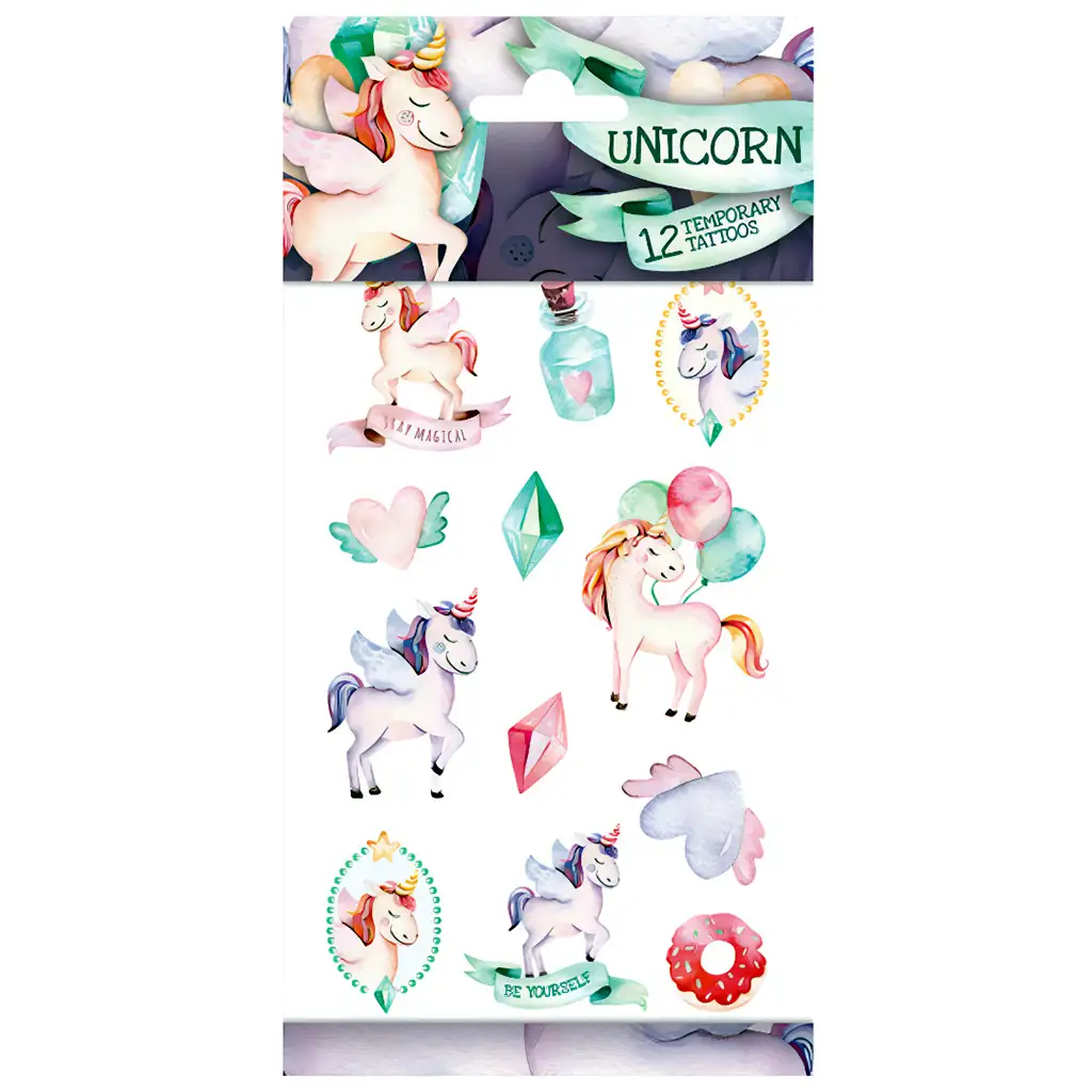 Ta komplet tetovaž je odličen dodatek za rojstnodnevne zabave, kostumske zabave ali preprosto za vsakodnevno ustvarjalno igro. Z enorogi, barvitimi srčki in drugimi čarobnimi elementi lahko otroci ustvarijo svoje zgodbe in popestrijo svoj videz s temi ljubkimi, pravljičnimi slikami.