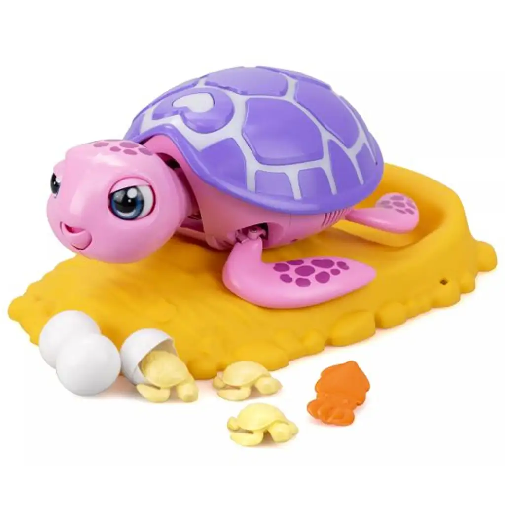 Želvo lahko tudi nahranite s priloženo želvjo hrano in se različno odziva, če prejme nego daljši ali krajši čas. Igralni set omogoča otrokom, da se z njim igrajo znova in znova, saj lahko oklep enostavno odstranijo, jajca pa vrnejo nazaj.