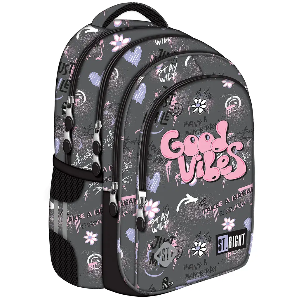 Vzdržljivi materiali in močne zadrge zagotavljajo, da bo nahrbtnik St.Right Good Vibes zvest spremljevalec v šoli in prostem času še vrsto let.