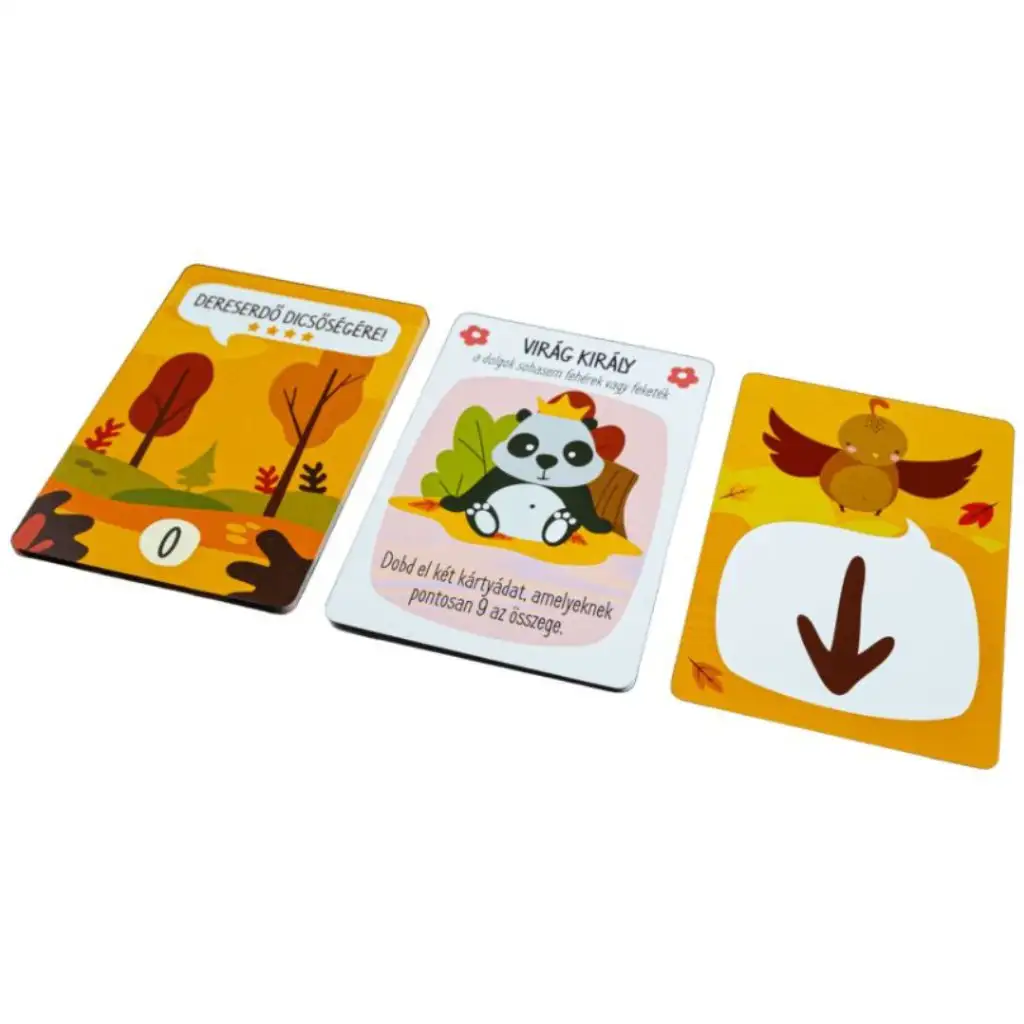32 pogovornih kart (vrednosti 1-8, v štirih barvah: kremplji, cvetovi, listi in oči)