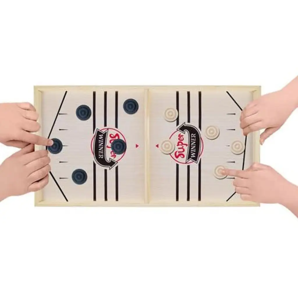 Sling Puck je pri nas manj znana spretnostna igra, vendar je zaradi svoje preprostosti in hitrosti odlična izbira in hkrati odlična sprostitev. Igralna plošča z lesenim okvirjem je razdeljena na dva dela, središče pa ločuje majhna vrata. Oba igralca začneta igro z enakim številom ploščkov, ki jih morata z gumijastim trakom na svojem igralnem polju skozi majhna vrata streljati na nasprotnikovo stran. Igro zmaga tisti, ki mu na svoji strani prej zmanjka vseh ploščkov, vključno s tistimi, ki jih je nasprotnik že prestrelil. Sling Puck je odlična družabna igra, ki razvija koordinacijo oči in rok ter spretnost, poleg tega pa se organizirajo tudi resna tekmovanja.