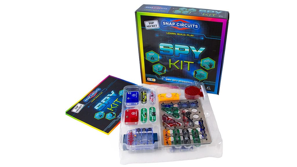 Komplet Snap Circuits je hkrati igrača in praktičen način, da se otroci naučijo delovanja elektrike in naprav. Z združevanjem elementov Snap Circuits na plošči lahko otroci ustvarijo več kot 20 različnih vohunskih misij, kar jim ponuja zabavno izkušnjo tajnega agenta med učenjem. Komplet vsebuje slikovno ilustriran vodnik, ki olajša navdušenim otrokom, da se samostojno znajdejo v procesu gradnje.