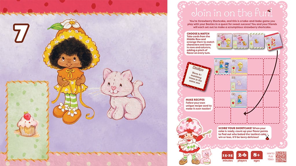 Otroci izmenično izpolnjujejo svoje kartice, da ustvarijo najboljši recept za torto! Ta igra ni le zabavna, ampak tudi razvija ustvarjalnost in timsko delo. Otroci lahko kombinirajo različne sestavine in okuse, medtem ko se učijo o sestavinah in procesu peke. Na koncu igre lahko vsak deli svoj recept in celo pripravijo sanjsko torto, da okusijo sadove skupnega dela.V tej hitri igri s kartami se igralci in njihovi najboljši prijatelji (znani tudi kot Berry Friends Forever) med seboj pomerijo, da bi ustvarili popolno torto za Strawberryjevo zabavo. Da bi dokončali svoje recepte za torto, morajo otroci, stari 8 let in več, strateško postavljati karte, zbirati pripomočke za zabavo, pripravljati sladke dobrote in se s svojimi najljubšimi liki prebiti skozi presenečenja in izzive. Igra vključuje tudi nalepke z vonjem po jagodah, tako da lahko otroci povohajo svoje okusne stvaritve.