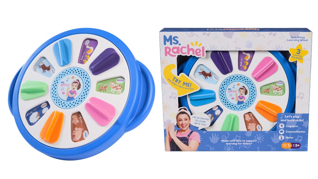 Posebej je namenjen **majhnim otrokom** **od 1. leta starosti** in je priporočljivo uporabljati Ms. Rachel Gugalnico za učenje, ki jo je razvil **Spin Master**. To je **izobraževalna igrača**, ki otrokom pomaga **povezovati besede** z **zvoki**. Kolo ima **tri različne načine delovanja**: **učne pesmi**, **zvoki domačih živali** in **barve**. Ko otroci pritisnejo gumb na sredini kolesa, jih **Ms. Rachel** spodbuja, naj izberejo pesem, zvok ali barvo. Če otroci pritisnejo pravi gumb, **Ms. Rachel** potrdi njihovo izbiro.Ta igra ni le zabavna, ampak tudi razvija otrokov besedni zaklad, slušno razumevanje in sposobnost prepoznavanja barv. Zaradi različnih načinov se otroci lahko učijo na raznolik način, medtem ko se igrivo spoznavajo z glasbo, živalskimi zvoki in barvami. Igra spodbuja tudi pozornost, spomin in fine motorične spretnosti, zato je idealna izbira za najmlajše.