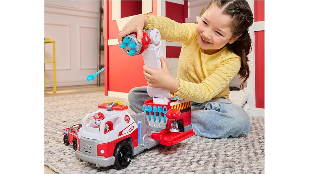 Otroci se lahko podajo v akcijo s tovornjakom Spin Master PAW Patrol Fire Rescue Rapid Reload Fire Truck. Interaktivno vozilo, ki ga je navdihnila znana predšolska serija, ima vgrajen izstreljevalnik, ki ob vrtenju kolesa na vrhu izstreli plastične vodne curke. Izvlečna lestev se lahko vrti za 360 stopinj in se spusti za hitro ponovno polnjenje, medtem ko luči in zvoki naredijo igro še bolj razburljivo ter pomagajo otrokom, da se vživijo v pustolovščino. Komplet vsebuje figurico Marshalla, skrito mini vozilo in 10 vodnih vijakov, ki jih je mogoče priročno shraniti na zadnji strani gasilskega tovornjaka. Ta igrača ni le zabavna, ampak razvija tudi domišljijo otrok, njihove sposobnosti reševanja problemov in fino motoriko, medtem ko se igrajo s svojimi najljubšimi liki iz PAW Patrol.