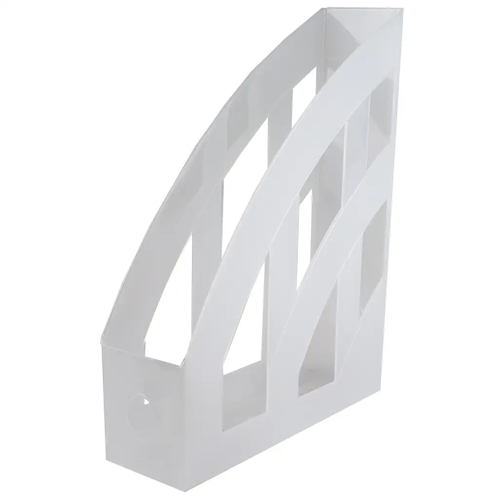 Bela prozorna barva plastike daje nosilcu za dokumente edinstven videz, ki ustvarja svež in moderen vtis na pisalni mizi ali v pisarniškem okolju. Prozorna zasnova omogoča enostaven pregled shranjenih dokumentov, tako da hitro najdete, kar potrebujete.