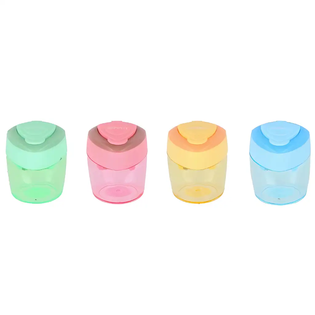 Ostri svoje svinčnike ostre in pripravljene za uporabo s tem praktičnim valjastim šilčkom z dvema luknjama! Zahvaljujoč posodi in pokrovu ga lahko enostavno uporabljaš, tvoji svinčniki pa bodo vedno pripravljeni na uporabo.
