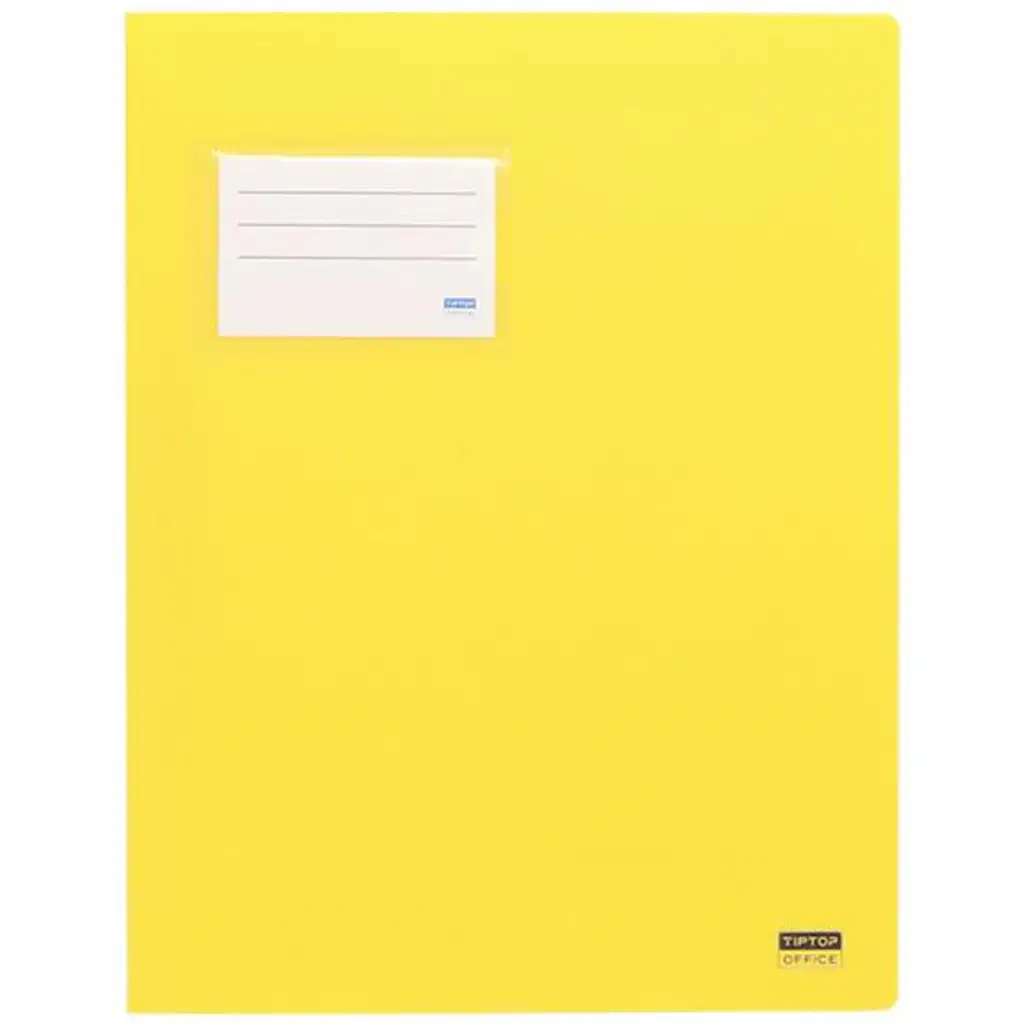 Prevleka mape je izdelana iz trpežnega, barvnega polipropilena, ki je odporen na gubanje in obremenitve pri vsakodnevni uporabi. Prevleka je enostavna za čiščenje, zato ohranja lep videz dlje časa. Na sprednji strani je prozorno držalo za kartice z zamenljivo nalepko, kar je praktična rešitev, če želite mapo označiti po predmetu, imenu ali razredu.