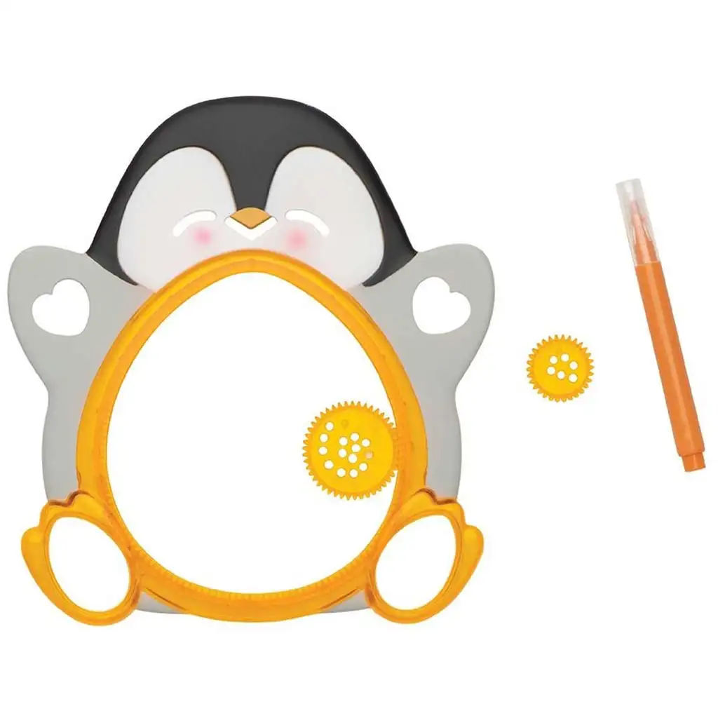 Kompakten in enostaven za uporabo, set je idealna izbira, če vaš otrok rad riše in želi ustvarjati edinstvene, simetrične oblike. Pingvinova oblika ni le zabavna, ampak tudi praktična: pomaga pri natančnem nameščanju šablon in omogoča otrokom udobno uporabo. Set vsebuje dve različni velikosti šablon, ki jih lahko pritrdijo na notranje zobe ohišja in z gibanjem, podobnim zobnikom, rišejo čudovite vzorce.