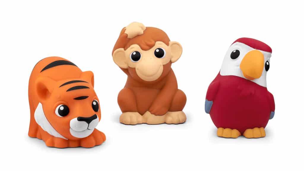 Vsaka figura je mehka in stisljiva, zato se popolnoma prilega v roke malčkov. Te igrače niso le zabavne, ampak tudi varne za najmlajše, saj jih je enostavno megati in ne vsebujejo ostrih delov. Mehki material omogoča, da se otroci brez skrbi igrajo z njimi, medtem ko se razvijajo njihove finomotorične spretnosti in tipni občutek.Te mehke, stisljive figure pomagajo pri razvoju domišljije malih otrok, medtem ko jih zabavajo z resničnimi zvoki, starosti primernimi pesmimi in otrokom prijaznimi pravljicami, ko jih postavijo na napravo Toniebox 1 ali 2. Začetna kolekcija vsebuje tri vrste Tonies-trio: Kmetija, Potovanje in Džungla. Te figure ne le zabavajo, ampak razvijajo tudi slušno razumevanje, jezikovne spretnosti in ustvarjalnost. Otroci jih lahko enostavno uporabljajo, tako da lahko samostojno odkrivajo svet pravljic in pesmi, medtem ko se učijo v varnem, igrivem okolju.